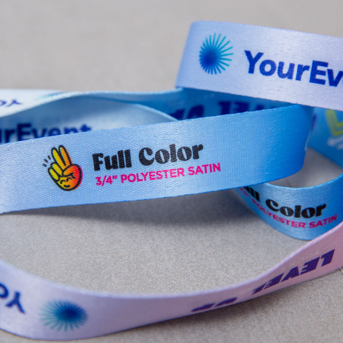10 business days + shipping from artwork approval. Need them sooner? View our selection of quick-ship blank lanyards.